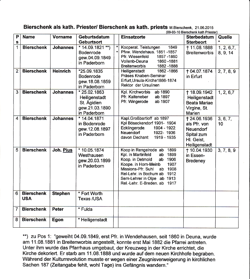 katholischen Pfarrer mit dem Namen "Bierschenk" / Bierschenks